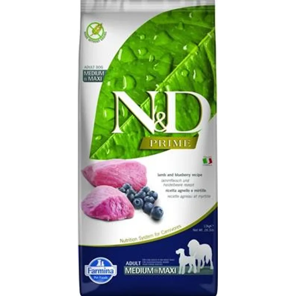 ND DOG PRIME MEDIUM/MAXI AGNELLO/MIRTILLO KG 12